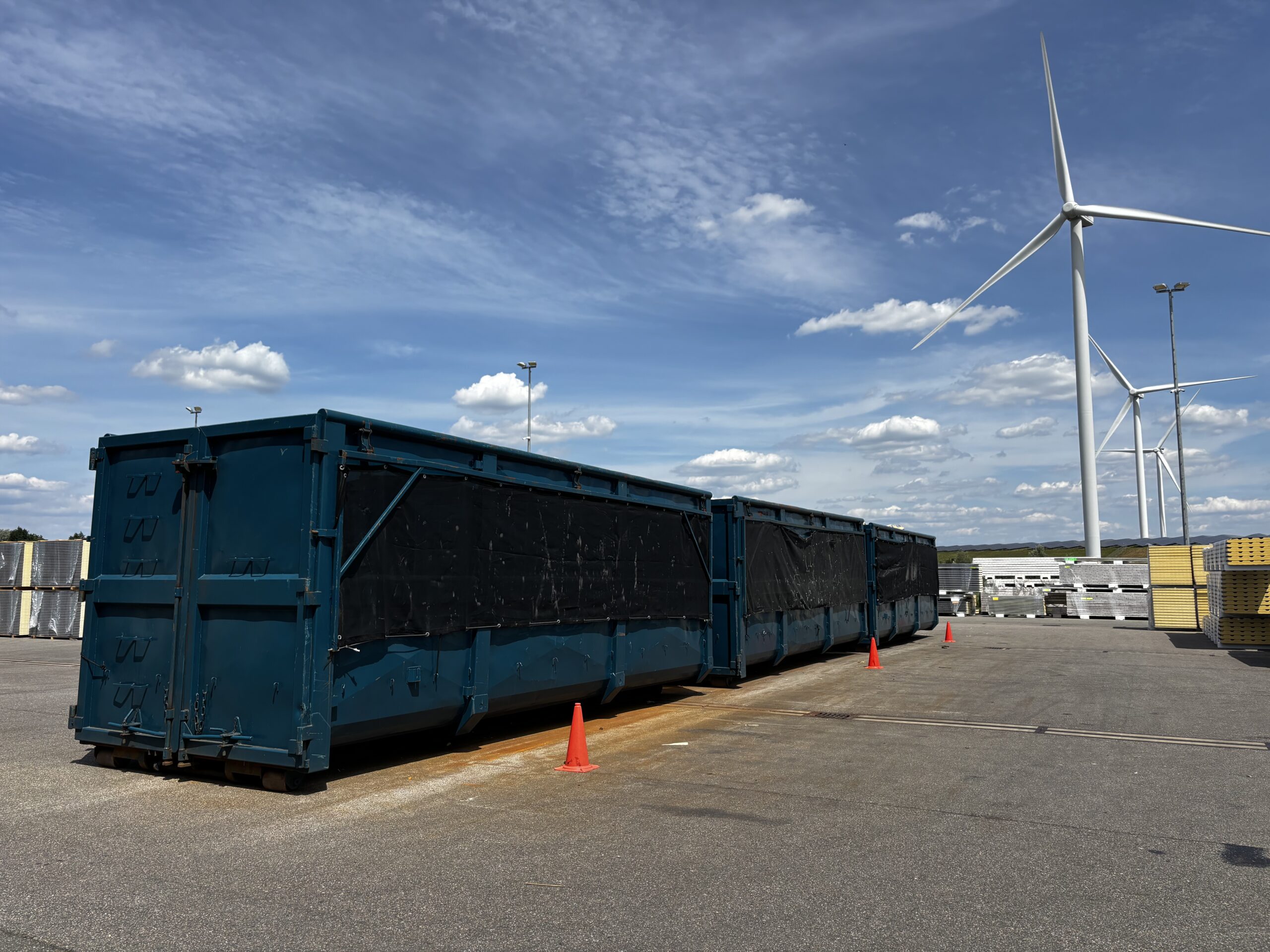 Bei SAB-profiel recyceln wir sämtliche Schneidabfälle und Testpaneele aus der Produktion von Sandwichpaneelen. Dieses Material wird in 40-m³-Containern gesammelt.
