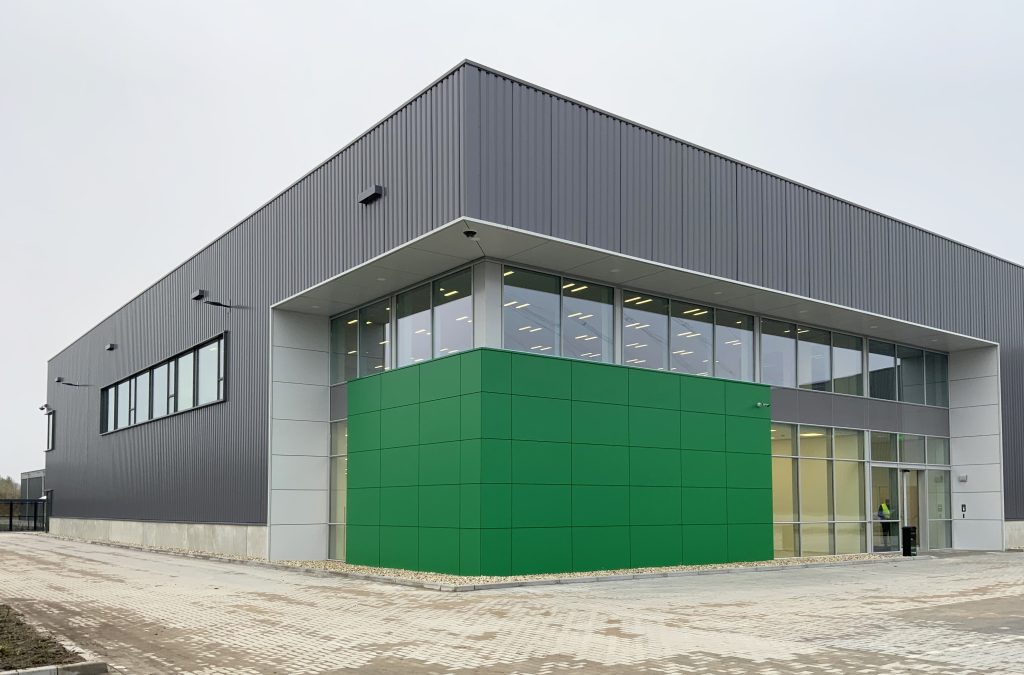 Die Filialen der Technische Unie bestehen meist aus einem Servicezentrum, einer Büroeinrichtung und einer Distributionshalle für die regionale Versorgung, weiß Lensink. „Oft handelt es sich um große Gebäude, daher müssen Materialien und Farben gut ausbalanciert werden.“ Und das ist gelungen. „Das auffälligste Merkmal des architektonischen Stils der Technische Unie ist der Eingangsbereich für das Servicezentrum und Büro. An einer strategischen Ecke oder genau in der Mitte wird ein „Biss“ aus dem Gebäude genommen. Die dadurch entstehende Lücke wird architektonisch mit großen Glasfassaden mit einem eleganten Renovierungsprofil und Trespa Meteon Paneelen in dem markanten Technische Unie Grün ausgefüllt.“ Der Rest des Gebäudes wird bewusst sehr neutral gehalten, erklärt er, mit einem Betonsockel und PIR-Sandwichpaneelen SAB W 135.1000 TL in einem dunklen, ruhigen Grauton. „Dadurch kommen die Akzente viel besser zur Geltung und ein zeitloses Design wird gewährleistet. Zudem passt das Design so nahtlos in die Gestaltungsvorgaben der niederländischen Gemeinden. Bisher mussten wir keine Anpassungen vornehmen.“
