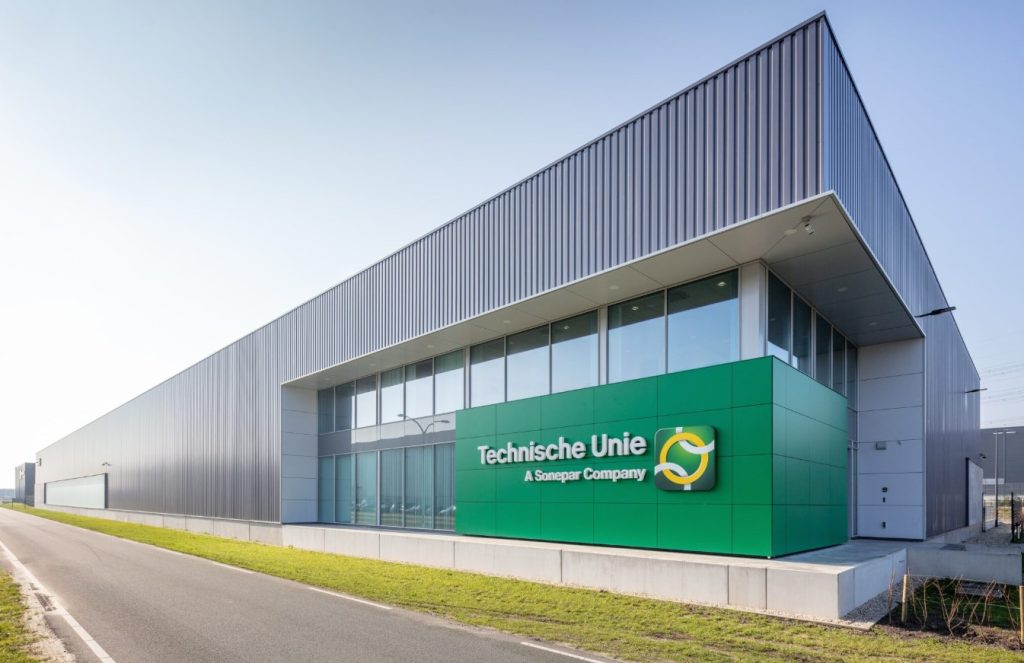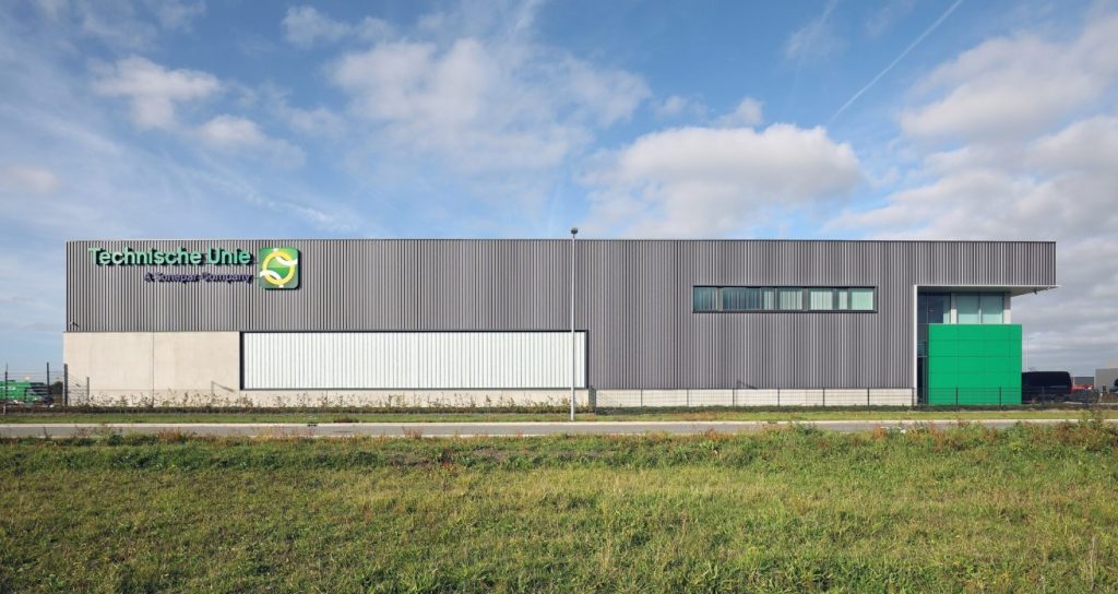 Technische Unie, eine Sonepar Company, ist der größte technische Großhändler in den Niederlanden. Das Unternehmen liefert über 2 Millionen elektrotechnische Artikel von mehr als 700 Lieferanten. Die grünen Lkw und Lieferwagen sind seit Jahren ein auffälliger Anblick auf den niederländischen Straßen. Darüber hinaus ist die grüne Farbe der Eyecatcher einer zunehmenden Anzahl von Filialen im ganzen Land. In Zusammenarbeit mit Technische Unie hat Buro Duck einen erkennbaren und zukunftssicheren architektonischen Stil für sowohl neue als auch bestehende Großhandelsstandorte entwickelt. Grüne Trespa Meteon Paneele, ein Betonsockel und dunkelgraue PIR-Sandwichpaneele SAB W 135.1000 TL sorgen für ein professionelles und unverwechselbares Erscheinungsbild und die perfekte Balance.