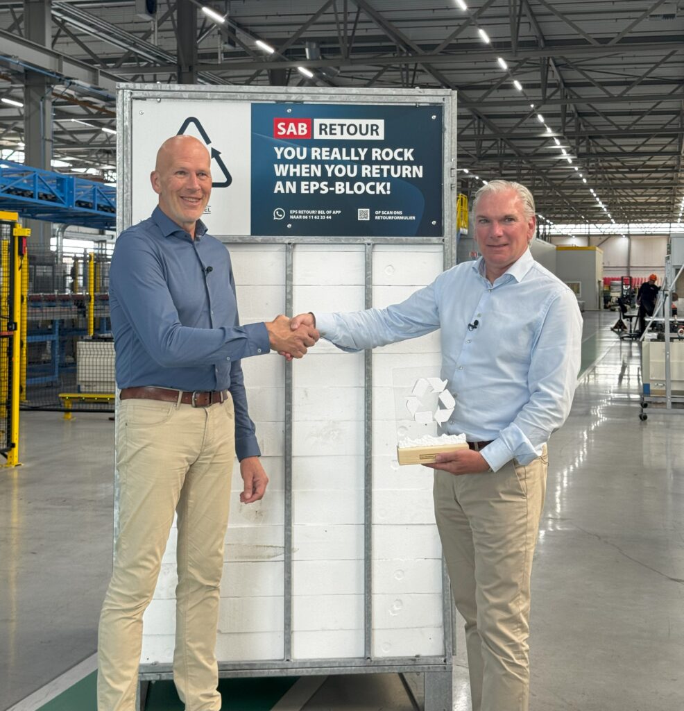 Der Circular EPS Award wurde feierlich an SAB-profiel überreicht. Rogier Goes, Direktor des Branchenverbands Stybenex Verpakkingen, überreichte den Award an Govert Kockelkoren, Geschäftsführer von SAB-profiel.